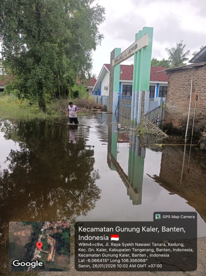 Tangerang – Di tengah kondisi gedung sekolah yang terendam banjir, SMP Negeri 1 Gunung Kaler tetap menunjukkan kepedulian sosial dengan turun langsung membantu warga terdampak banjir di wilayah sekitar. Aksi kemanusiaan ini menjadi bukti bahwa semangat berbagi tidak pernah surut, meski fasilitas pendidikan ikut terdampak.”Senin (26/1/26)