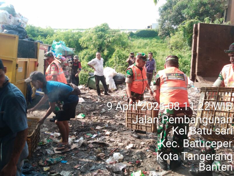 Kodam Jaya, Tangerang – Satgas Penanganan Sampah Koramil 02/Btc, Kodim 0506/Tgr menyasar tumpukan sampah yang ada di Jalan Pembangunan 1 Kelurahan Batu Sari, Kecamatan Batuceper, Kota Tangerang, Kamis (09/04/2026).